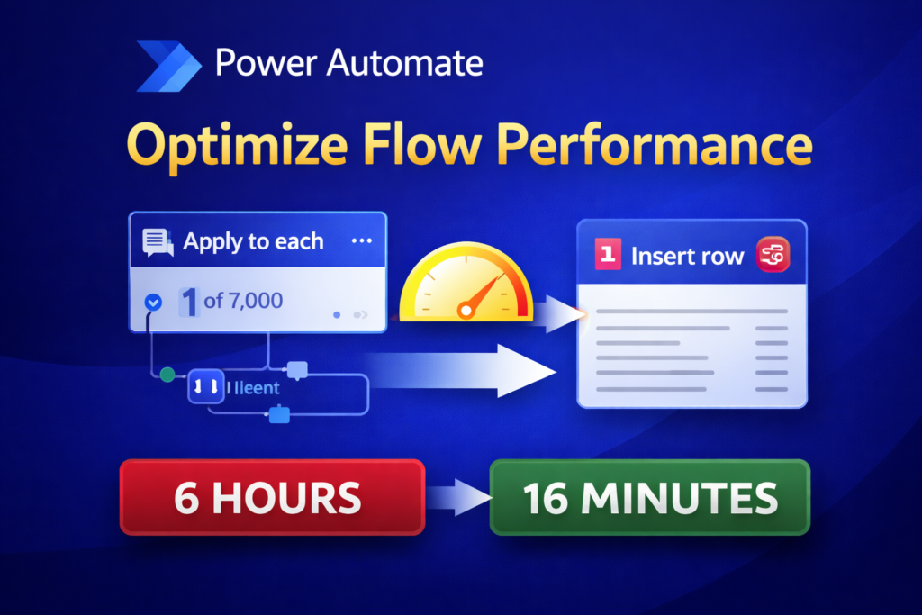 In this articule, I’ll show a real example of Power Automate performance optimization, where I reduced a flow execution time from 6 hours to 16 minutes.